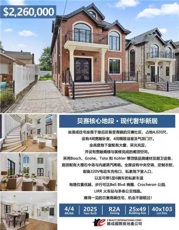 🌟坐落成住宅坐落于皇后区备受青睐的贝赛社区,设有4间宽敞卧室、4间精致浴室及气派门厅。