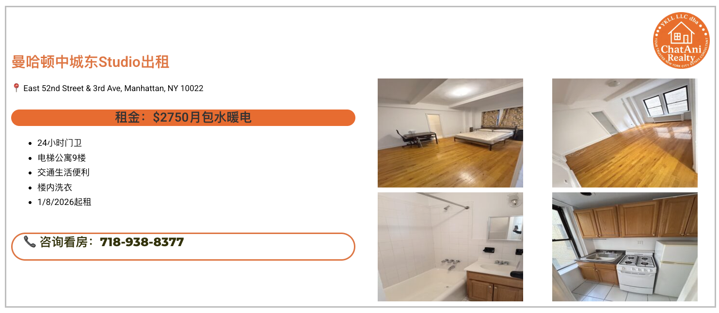 #纽约租房 #曼哈顿租房 #中城东租房 #纽约留学生 #纽约生活 #MidtownEast #无中介费 #纽约职场