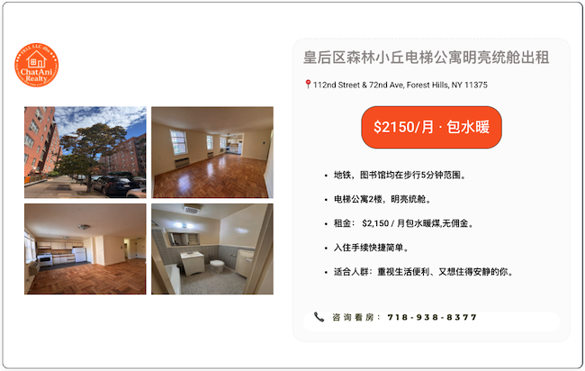 📞 看房预约电话或短信:718-938-8377 微信:chat7189388377