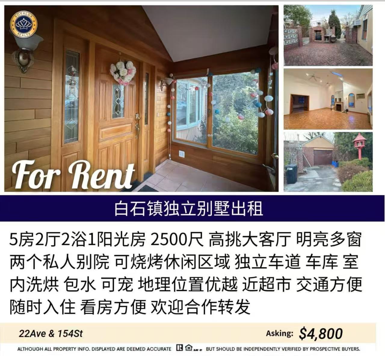 白石镇独栋house出租 $4800