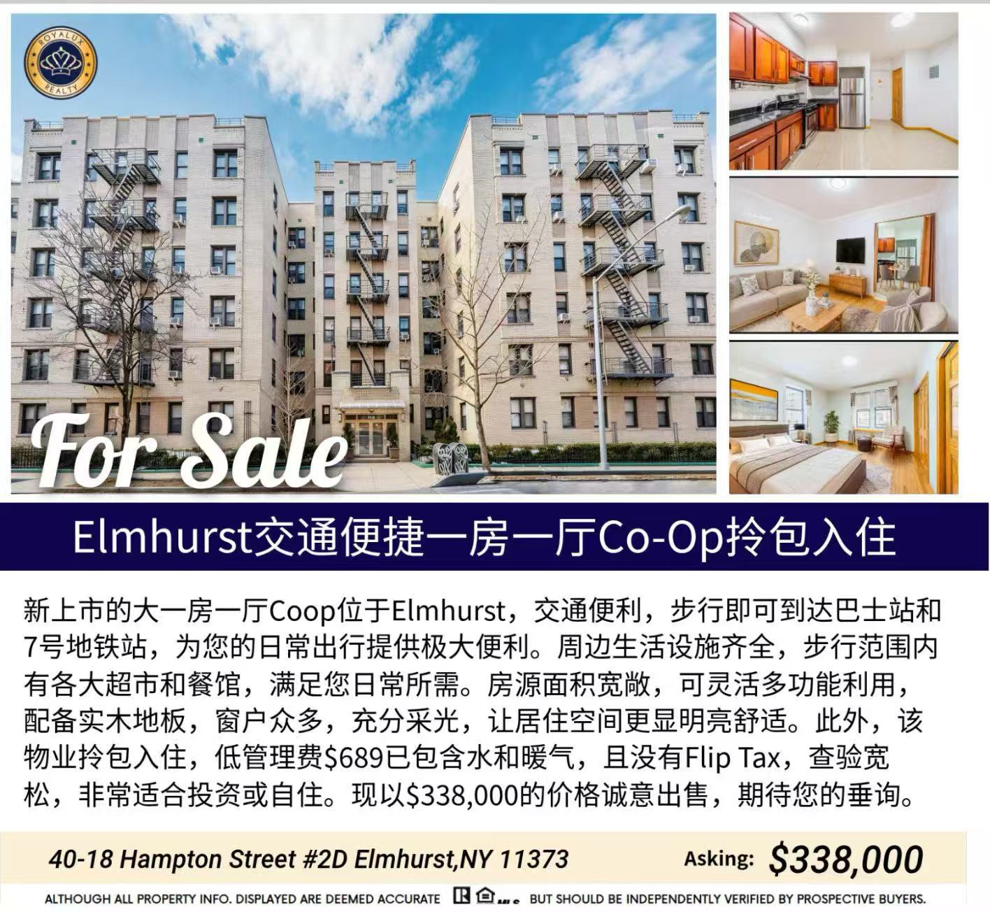 🏙️ 大一房一厅Coop位于Elmhurst出售 | 售价:$338,000
