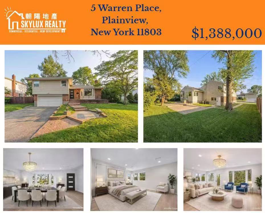 位于长岛备受欢迎的 Plainview-Old Bethpage 顶级学区,精心翻新的朝南Split-Level 兼具空间、采光与品质。