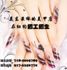 康州富豪社区指甲店急请大工、小工、按摩工,要求有经验、手艺好。(会英文、会开车者优先)法拉盛有车接送,路程30分钟。另招数名学生,亲授美甲技艺。报名电话:718-200-5789 戚先生