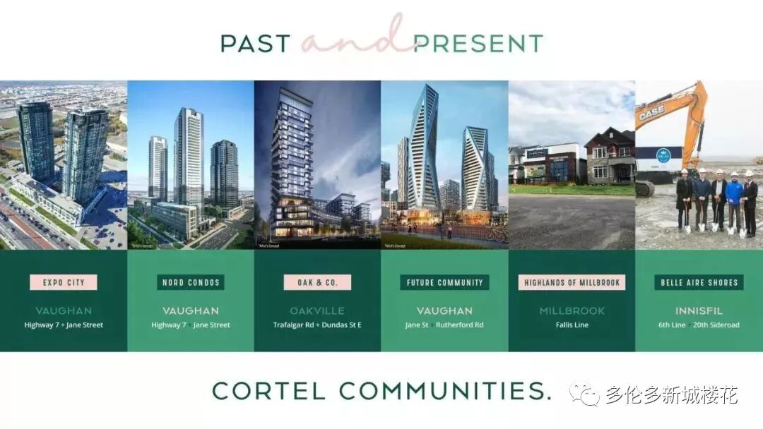 EXPO City项目总体规划由5栋大厦,多家零售店,以及一个20英亩的公园和配套设施组成。CG Tower,不仅双向公园环绕,一楼还设有高档休闲咖啡厅,二楼是交流中心。相较于其他低层用作办公室或其他零售的项目,CG Tower有着更为稳定和安全的楼内环境。按照旺市市长Hon. Maurizio的远景规划,VMC中心区域,将在442英亩土地范围内,包含150万英尺的商业办公区/展览馆,75万英尺的商铺,12000户公寓居民和大型绿地。吸引多伦多市中心的大型雇主来到VMC正在变为现实,预计至少2万工作岗位将在附近产生,KPMG(毕马威)已经将般了过来,普华永道也即将入驻。由此可以预见Jane/Hwy7区域不出几年时间相比繁华的Yonge/Finch一带便有过之而无不及。 开发商介绍 Cortel Group成立至今超过40年,以打造完整社区为己任。由他们开发的楼盘和社区优秀、宜居、以人为本。他们在楼盘选址上充分考虑周边娱乐、绿地、购物、服务和交通等设施,在选材上充分考虑绿色环保,建筑品质优秀精致,受到很多客户的欢迎。 付 款 方 式