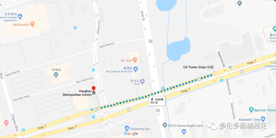 【楼盘名称】CG Tower公寓 【 开发商】Cortel Group 【 总层高】60层及約551户 507-1142呎 【地理位置】Jane & Highway 7, Vaughan 【 预计交房】2021年9月 VMC心脏位置 中央地带 位于旺市正在建设的市中心Vaughan Metropolitan Centre,建成后会有多栋办公及住宅大楼,餐馆、超市及休闲娱乐设施,生活交通方便: