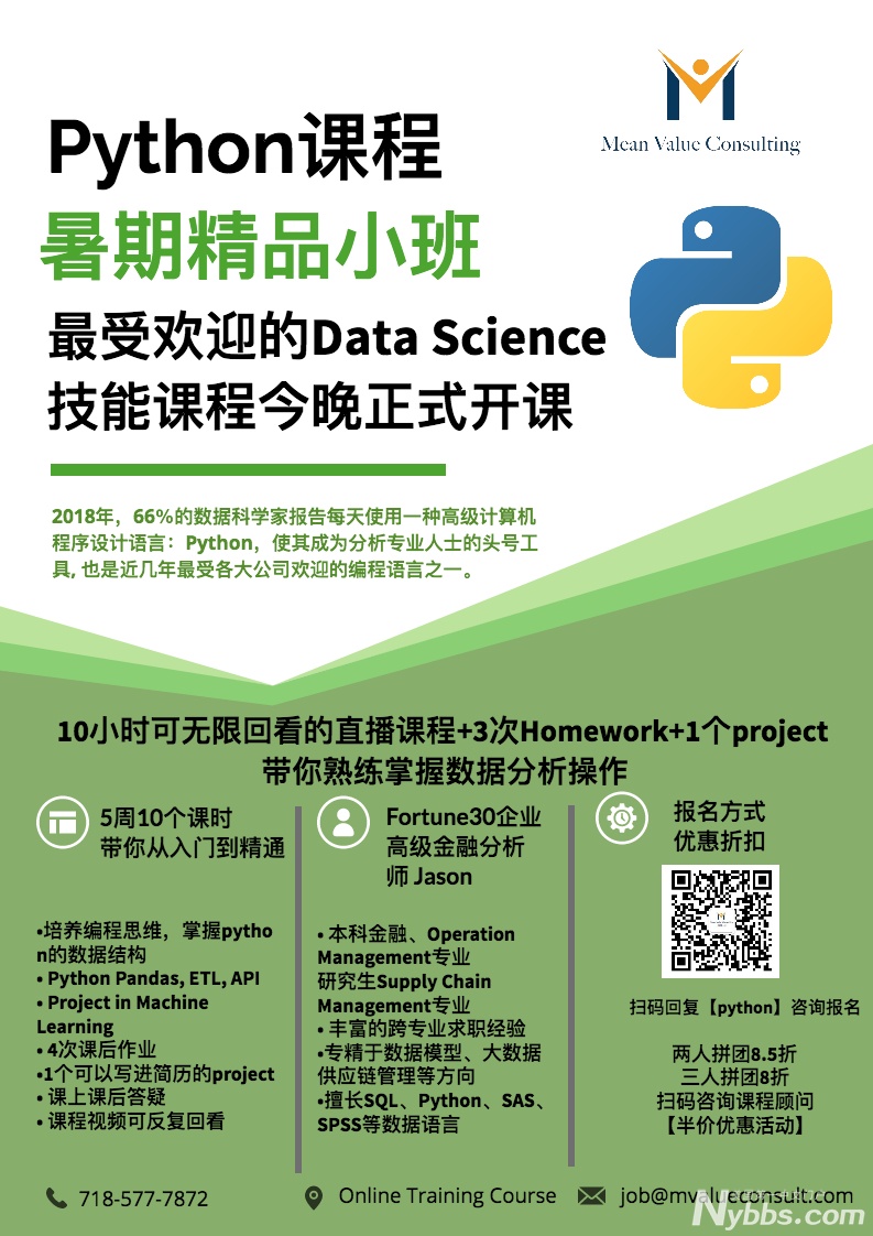 Python作为脚本语言之王,使其成为分析专业人士的头号工具。Mean Value邀请到了Fortune30企业高级金融分析师授课,专精于数据模型、大数据供应链管理等方向, 只需510课时就能做到行业必备知识点全覆盖。