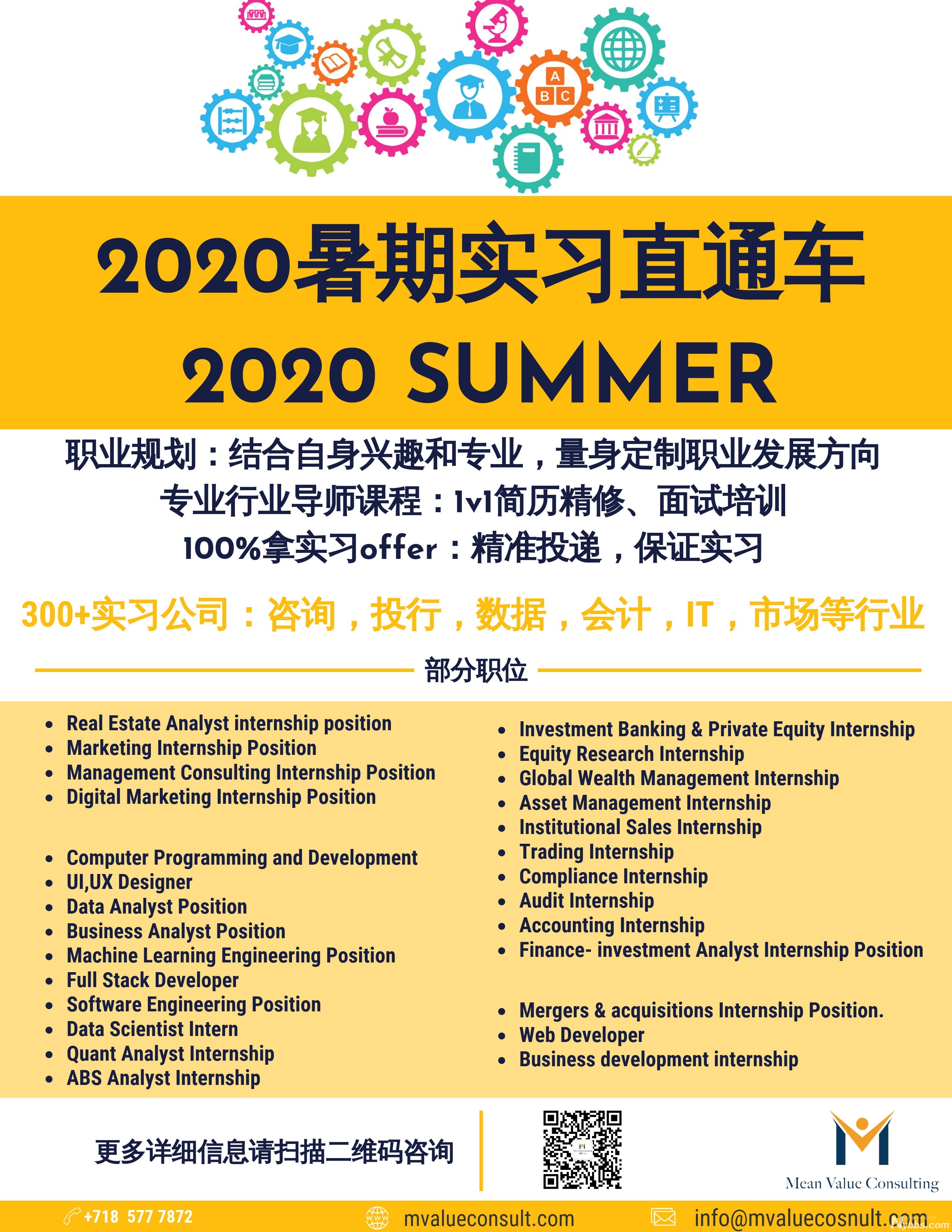 错过了“秋招“或者在之前求职中失利的同学还有时间 实习直通车计划,专业导师为你量身定制职业规划,精准投递,100%拿到offer,导师还会全程修改简历,量身定制cover letter,为你提供面试辅导,带你熟悉美国面试流程,礼仪和回答问题技巧。如果你还对美国面试抱有恐惧,不知道如何应对面试官的提问和寒暄,行动起来,联系Meanvalue,打开美国求职大门。