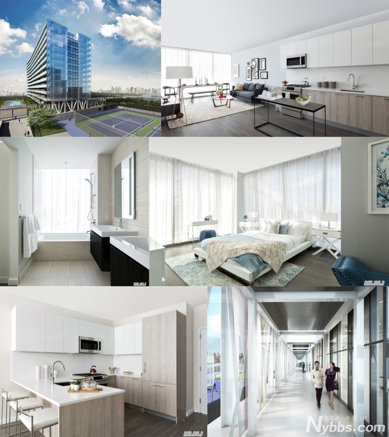 公寓内附超现代感精装修: 落地窗全面玻璃设计,意大利定制精品橱柜,德国顶级厨房家电,一体化中央冷暖气,智能温度调节仪,每个公寓都享有风景绝佳,面朝曼哈顿的超大阳台。