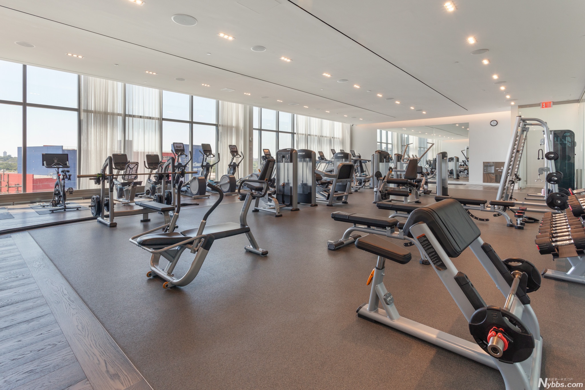 有健身房,游泳池,桑拿浴,会议-瑜伽-舞蹈大厅,网球场, 篮球场,小高尔夫球场,儿童娱乐场和游艺室。超市,美国多个大商场,餐馆,多个医生诊所。 5分钟走到地铁站和长岛火车站,到曼哈顿15-30分钟
