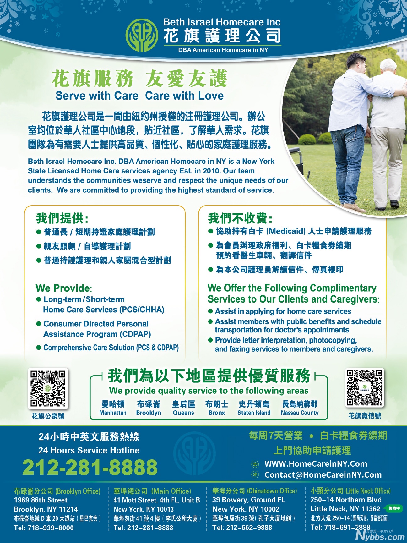 花旗護理公司,每周7天營業、白卡糧食券續期、上門協助申請護理