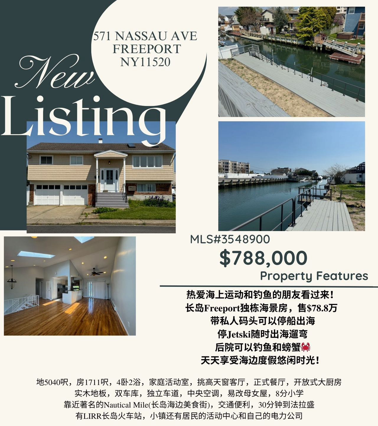 靠近著名的Nautical Mile(长岛海边美食街),交通便利,30分钟到法拉盛,有LIRR长岛火车站,小镇还有居民的活动中心和自己的电力公司(超低电费)。有🔑钥匙,随时看!付款方式灵活!售$78.8万