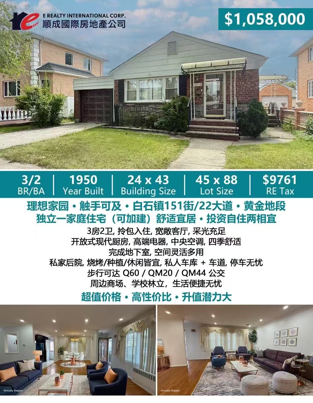 位于151街/22大道黄金地段的白石镇独立一家庭 (可加建)