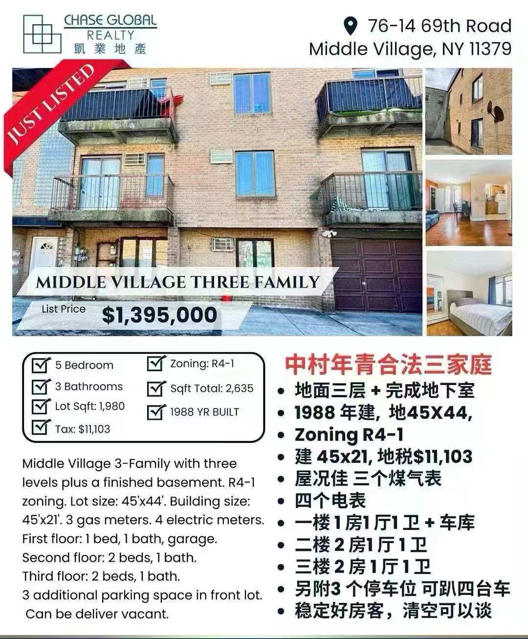 🔥中村 middle village 年青合法三家庭 🔥 仅售 139.5 万