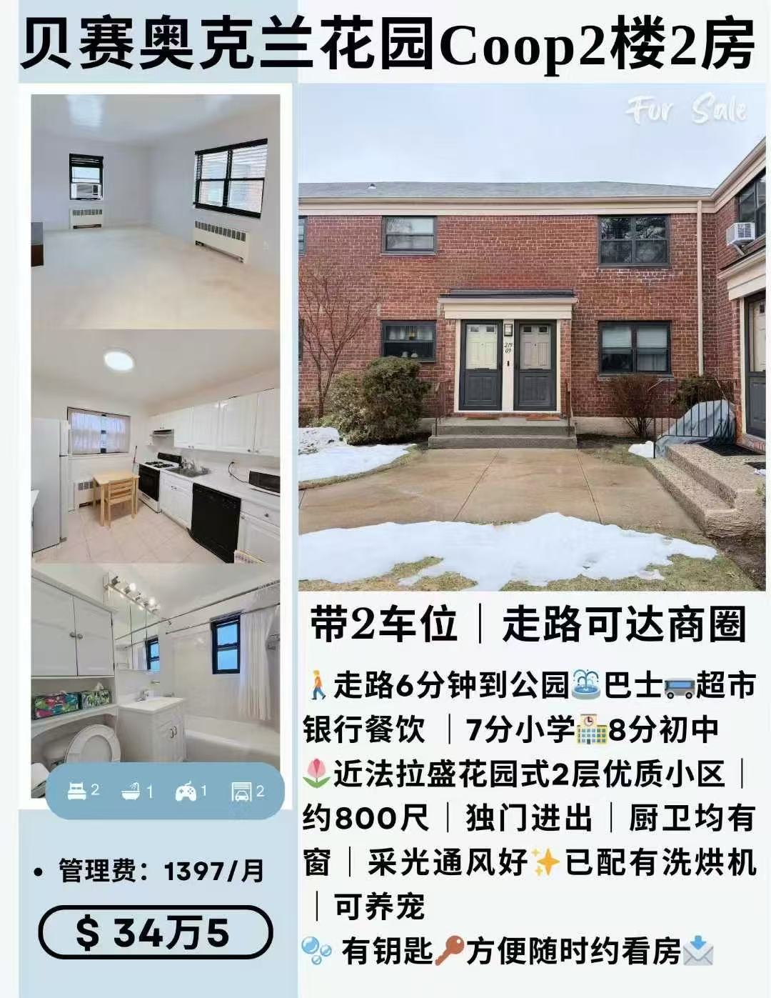 🌷近法拉盛花园式2层优质小区|约800尺|独门进出|厨卫均有窗|采光通风好